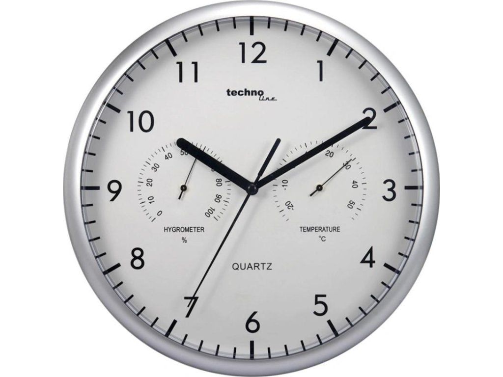 • analogové nástenné hodiny • čas riadený kryštálom • materiál plast • priemer ciferníka 230 mm • dve ciferníky na zobrazenie teploty a relatívnej vlhkosti • napájanie 1 ks batérie typ AA 1,5 V (tužková, nie je súčasťou balenia) • ciferník biely, číslice čierne