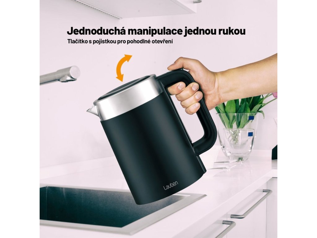 Teplotu volíte v rozmedzí 60-100 °C po desaťstupňových intervaloch. V kanvici Lauben ohrejete až 1,7 l vody naraz. Jej aktuálne množstvo vždy zistíte podľa externého indikátora. Víko kanvice je opatrené bezpečnostnou poistkou proti rozliatiu a otvárate ho ľahko, pomocou tlačidla umiestneného na držadle.