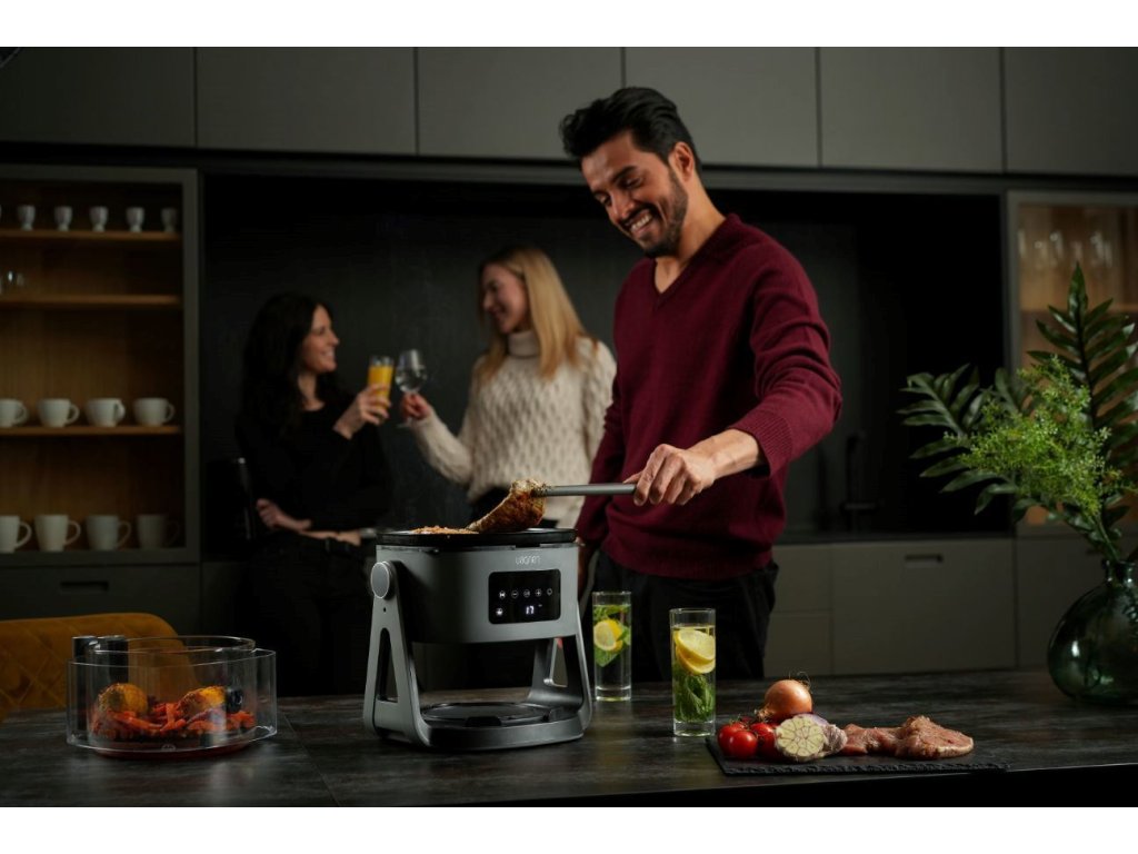 Horkovzdušná fritovacia rúra s grilom vďaka vysokorýchlostnej 360° cirkulácii vzduchu ušetrí čas strávený v kuchyni, energiu aj zdravie. Naháňa vašu cestu k lepšiemu životnému štýlu, pretože obľúbené vyprážané jedlá pripraví s využitím až o 80 % menšieho množstva tuku. Rovnomerné prepečenie dosahujú jedlá prenikaním infračerveného svetla. Ešte viac možnosti prípravy jedál poskytuje unikátna technológia umožňujúca otáčanie hornej časti o 180°, a to najmä v spojení s grilovacou a hlbokou panvicou, ktoré sú súčasťou balenia.