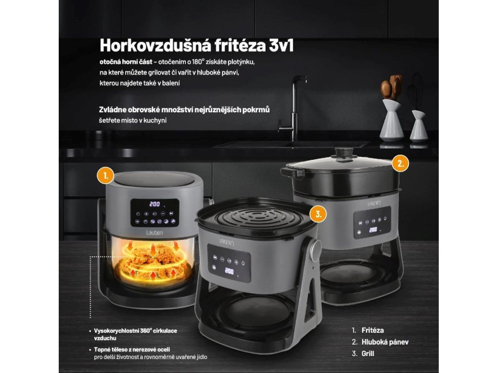 Lauben Glass&Grill Air Fryer 3in1 5500BG - horkovzdušná fritéza