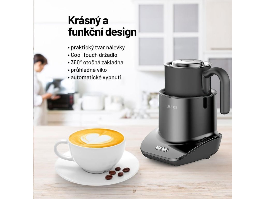 Ovládanie peniča je intuitívne a zvládne ho každý. Požadovaný režim si nastavíte pomocou dvoch tlačidiel. Penič mlieka Lauben je zároveň štýlovým dizajnovým doplnkom, ktorý bude vynikať v každej kuchyni. Ani u jeho funkčnosti nečakajte kompromisy. Vďaka protisklzovým nožičkám zostane vždy na svojom mieste a technológia cool touch zabezpečí, že sa nikdy nespálite o jeho držadlo.