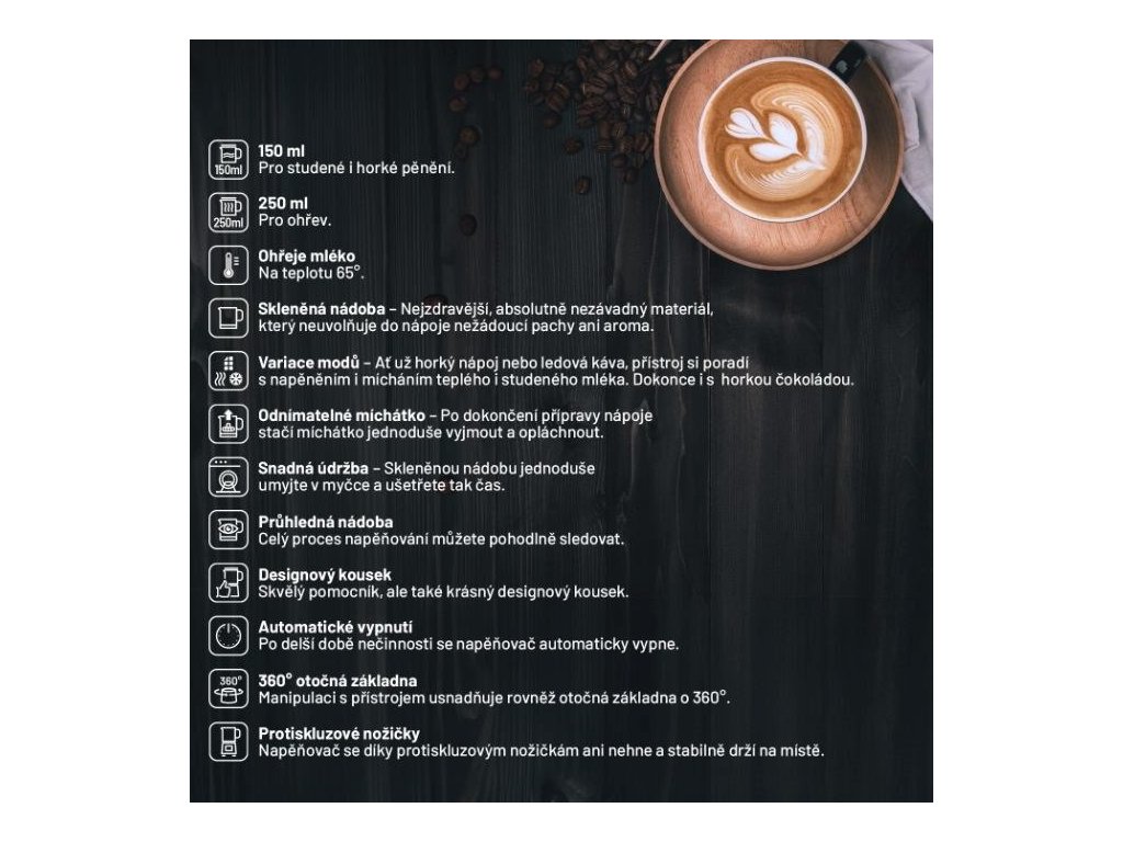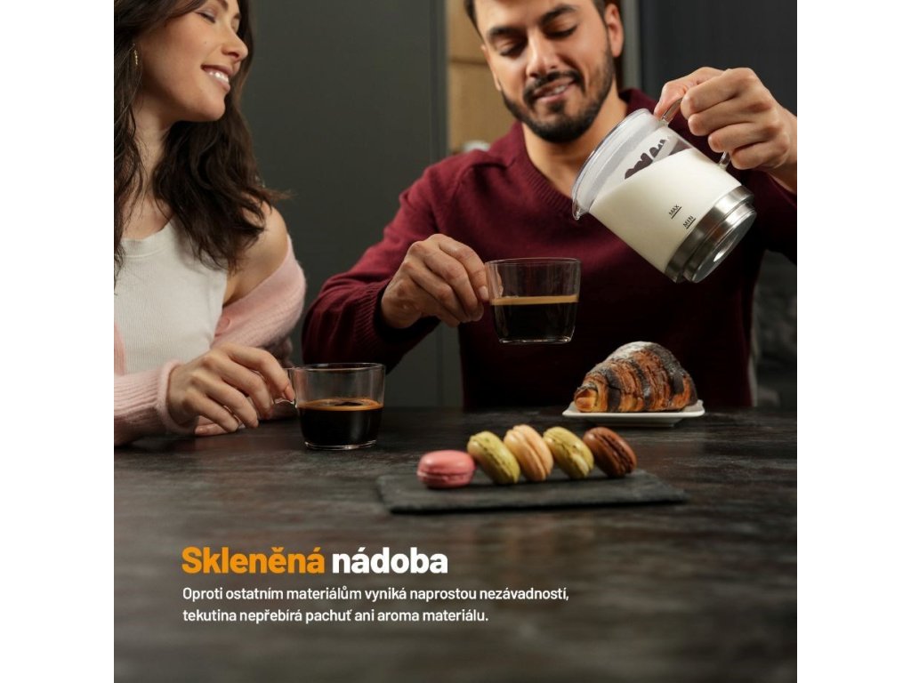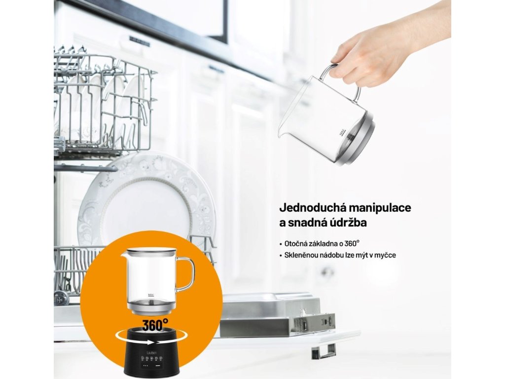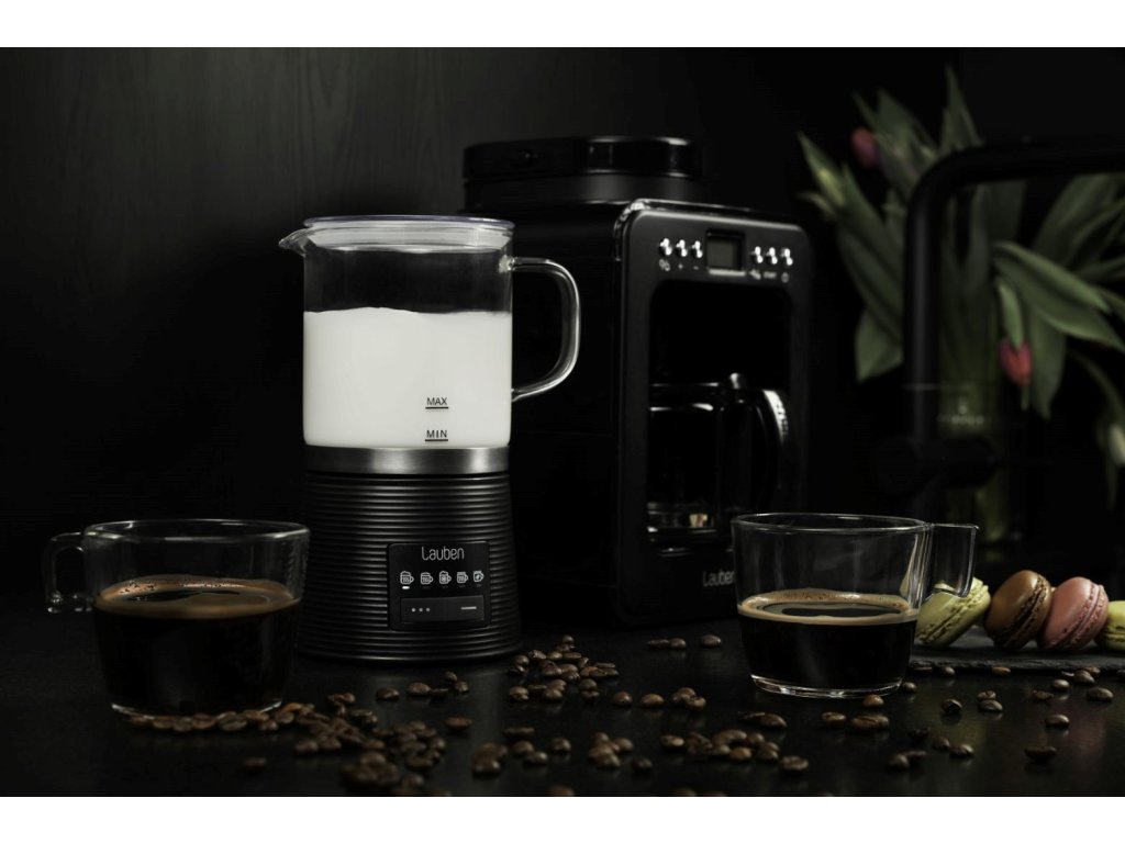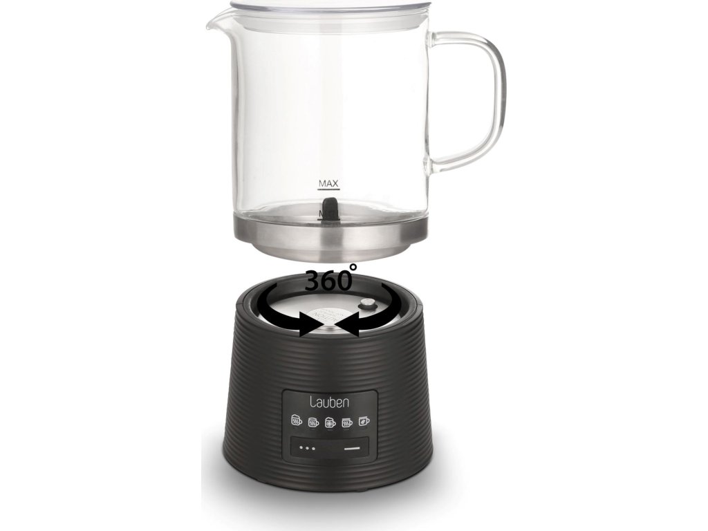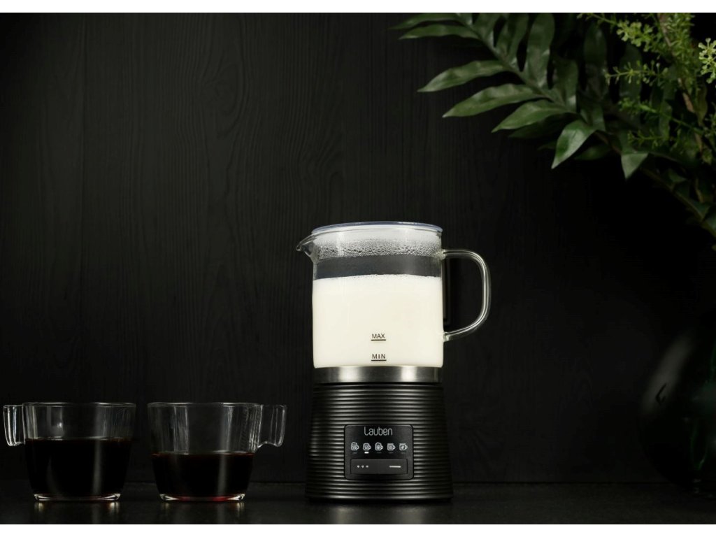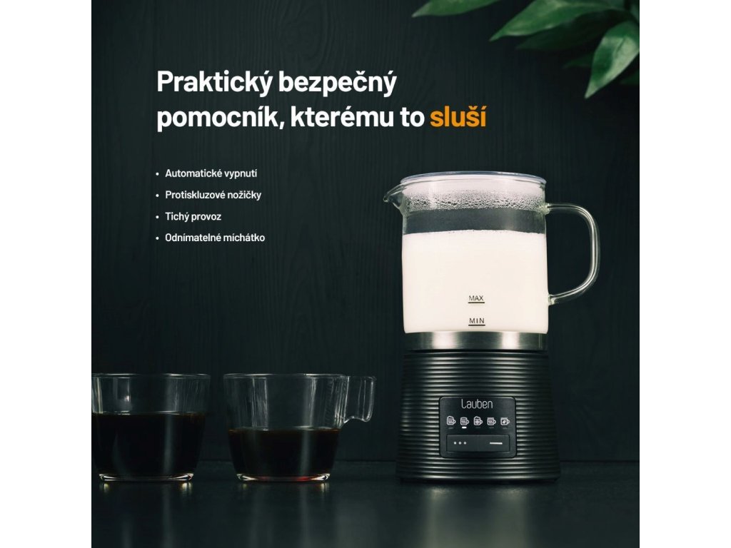 Nadšenci nápojov s dokonale našľahaným mliekom si teraz vďaka napäňovaču Lauben Glass Milk Frother 600BG vychutnajú aj v domácom prostredí či v práci mliečnu penu ako od baristu. Sklenená nádoba umožňuje sledovať proces prípravy, je zdravé a ľahké na údržbu, stačí umyť alebo vložiť do umývačky. Údržbu uľahčuje aj odnímateľné miešatko. Pre lepšiu manipuláciu má základňa schopnosť otáčať sa o 360°. Pomocou variácií režimov prístroj zvláda teplé aj studené našľahanie či miešanie a špeciálny režim vykúzli horúcu čokoládu. So svojimi baristickými schopnosťami nevyrušíte spiacu rodinu ani kolegov v kancelárii, pretože prevádzka napäňovača je veľmi tichá. Tento praktický dizajnový kúsok ohreje 250 ml a napení 150 ml mlieka. Protisklzové nôžky držia prístroj na mieste, k bezpečnosti prispieva aj funkcia automatického vypnutia.