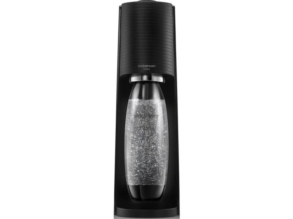 SodaStream Terra Black výrobník sody, mechanický, 1l láhev SodaStream Fuse, bombička s CO2, černý