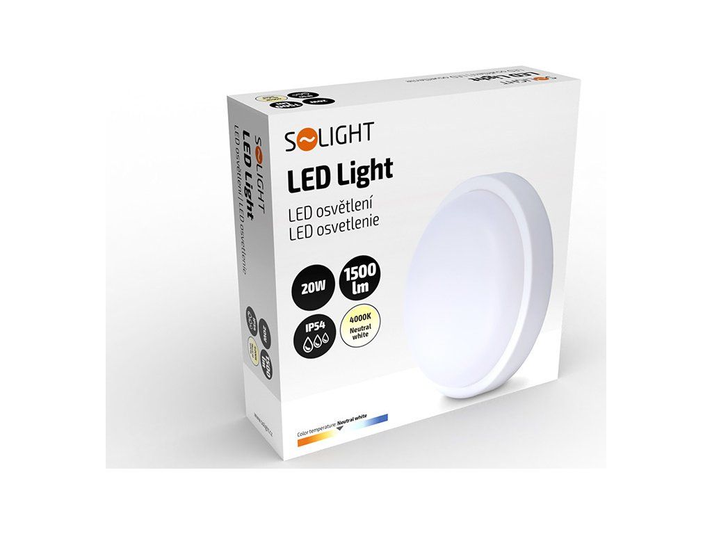 Kompaktné okrúhle LED svietidlo s výkonom 20 W a svetelným tokom 1500 lm je skvelým riešením pre osvetlenie stien a stropov, či už v interiéri alebo exteriéri. Vďaka neutrálnu bielej farbe svetla (4000K) poskytuje prirodzené osvetlenie vhodné pre každodenné použitie. S krytím IP54 je chránené proti striekajúcej vode a je teda ideálne aj do vlhkého prostredia.