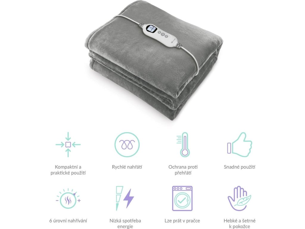S pomocou funkcie rýchleho a rovnomerného zohrievania sa deka začne zohrievať ihneď. Na požadovanú teplotu je zahrievajúca sa do pár minút.