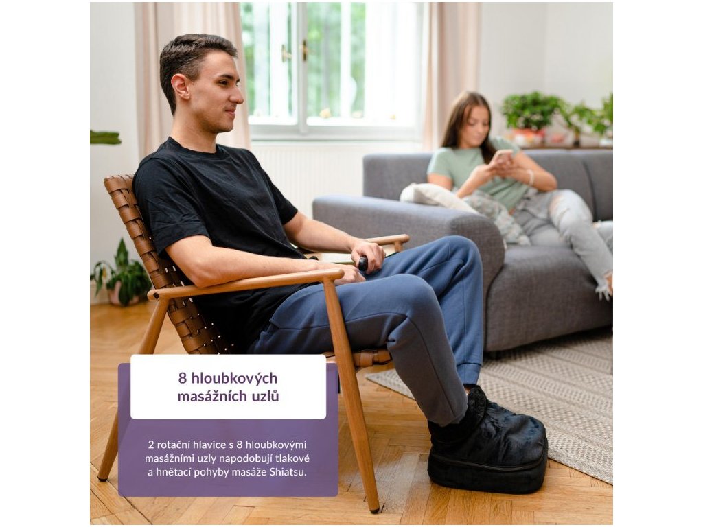 Dve rotujúce hlavy s ôsmimi masážnymi uzlami napodobňujúce tlakové a hnetacie pohyby masáže Shiatsu sú zárukou tej najlepšej relaxácie pre unavené nohy. Otáčanie hlavíc je možné zvoliť jedným alebo druhým smerom. Pravidelné masírovanie napomáha zlepšiť problémy so studenými nohami, cirkuláciou krvi, krvným tlakom, migrénami či chronickej bolesti chrbta a kĺbov. Masáž uľavuje od stresu a pomáha uvoľniť svaly, v kombinácii s integrovaným vyhrievaním potom pomáha zlepšiť rozsah pohybu, zmierniť kŕče či znížiť obsah kyseliny mliečnej po záťaži organizmu.