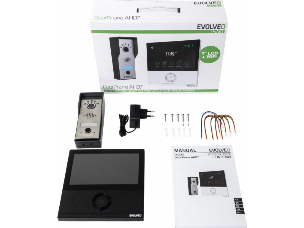 EVOLVEO DoorPhone AHD7, Sada domácího WiFi videotelefonu s ovládáním brány nebo dveří černý monitor