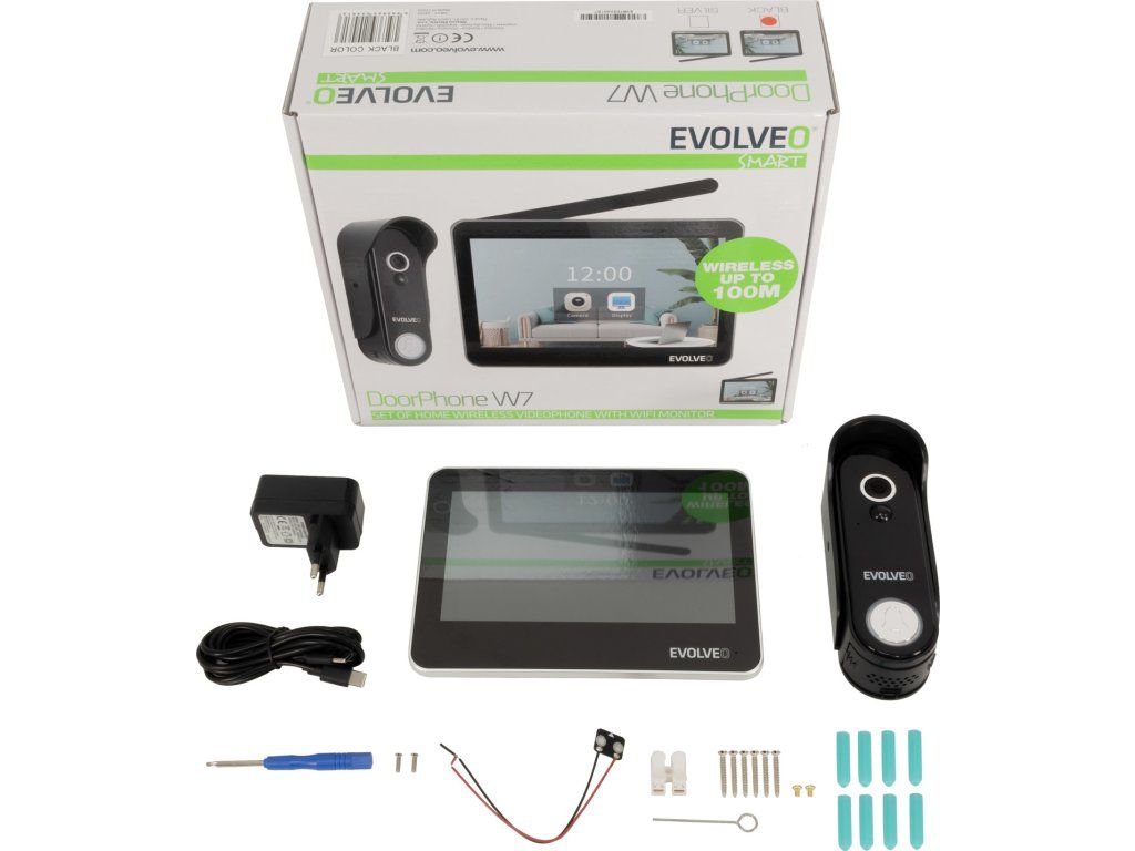 EVOLVEO DoorPhone W7, Sada domáceho bezdrôtového videotelefónu s WiFi čierny monitor