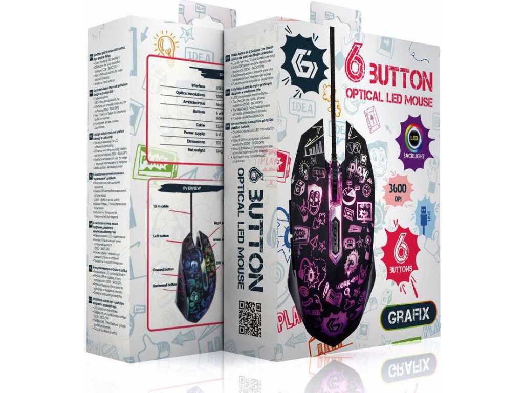 GEMBIRD myš MUS-6B-GRAFIX-01, černá s grafickým potiskem, USB