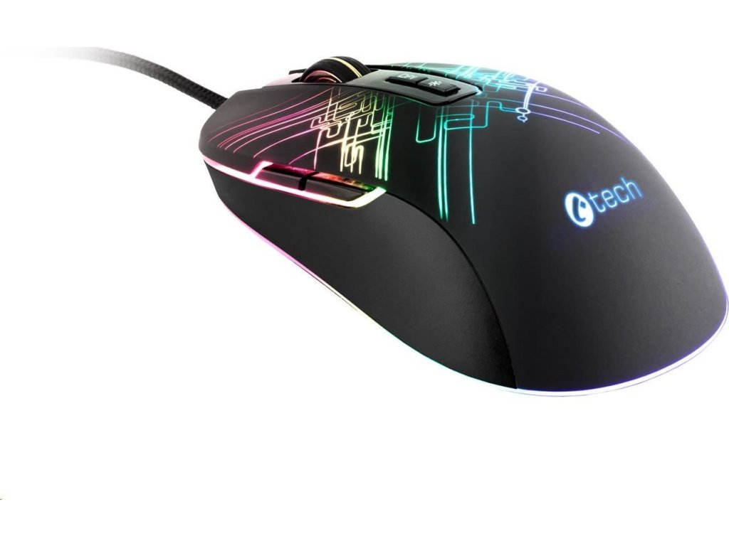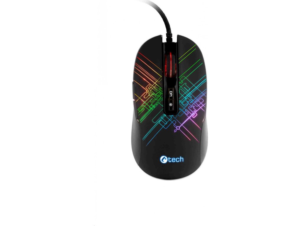 Herná myš C-TECH Dusk, pre príležitostné hranie, 3200 DPI, RGB podsvietenie, USB