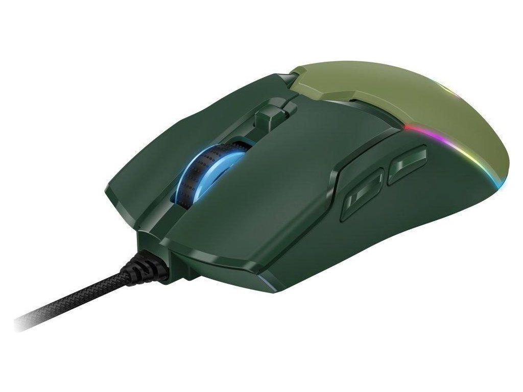 Herná myš disponujúca 6 tlačidlami a vysoko presným optickým senzorom s nastaviteľným rozlíšením v rozmedzí 800 až 7200 DPI. Ergonomický herný dizajn myši dopĺňa RGB podsvietenie. Na pripojenie k počítaču slúži 1,8 m dlhý opletený kábel zakončený USB konektorom.