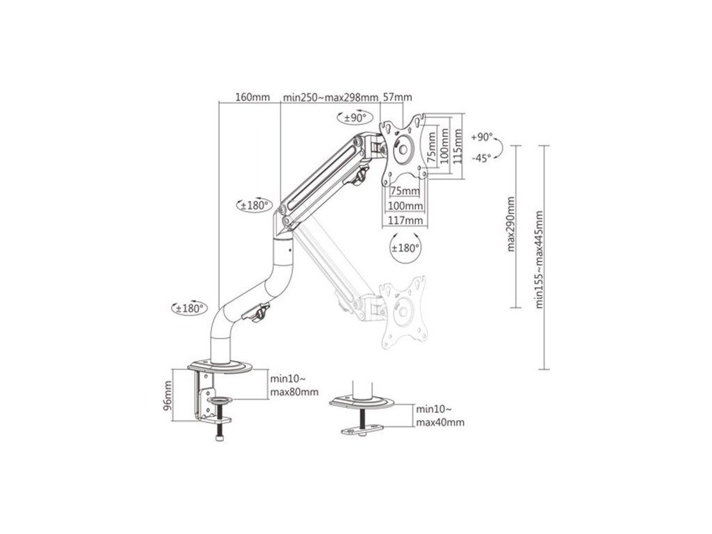 - Odolné nastaviteľné plynové pružiny vhodné pre monitory 2 - 8 kg