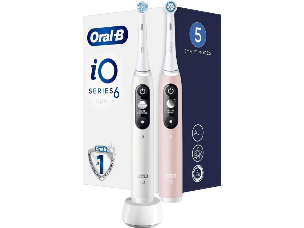 Oral-B iO Series 6 Duo White & Pink Sand set elektrických zubních kartáčků, 5 režimů, AI, časovač