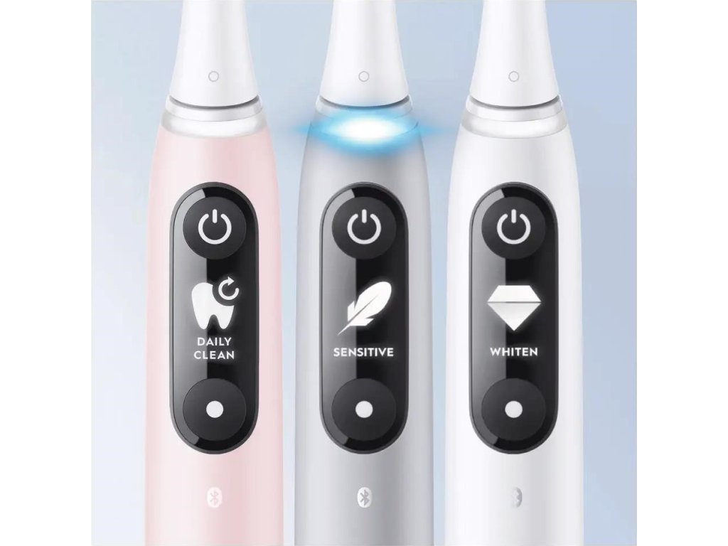 Dodnes najdôkladnejšie a najpohodlnejšie čistenie zubov pod značkou Oral-B! Vyskúšajte pokročilú technológiu a špičkové prevedenie zubnej kefky Oral-B iO6 a už nikdy nebudete chcieť nič iné! Inovatívny systém magnetického pohonu iO prenáša čistiacu energiu jemných mikrovibrácií na konce vláken, ktoré tak ľahko kĺžu po zuboch a robia čistenie účinným a príjemným. Zdokonalený chytrý senzor tlaku chráni ďasná a signalizuje, kedy si zuby čistíte správne. Umelá inteligencia rozpozná váš štýl čistenia a poradí vám, aby ste si vyčistili všetky zuby a nevynechali žiadne miesto.