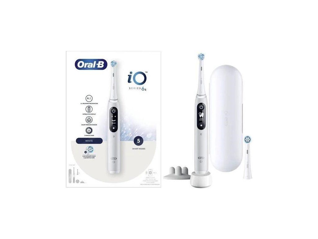 Oral-B iO Series 6s elektrický zubní kartáček, časovač, tlakový senzor, 5 programů, aplikace Oral-B, bílá