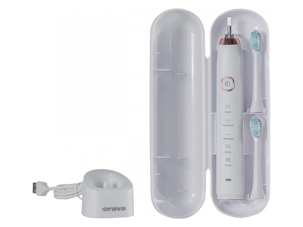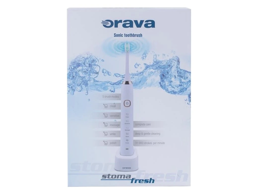 Orava Stomafresh sonický zubní kartáček, 5 režimů, cestovní pouzdro, časovač, bílá