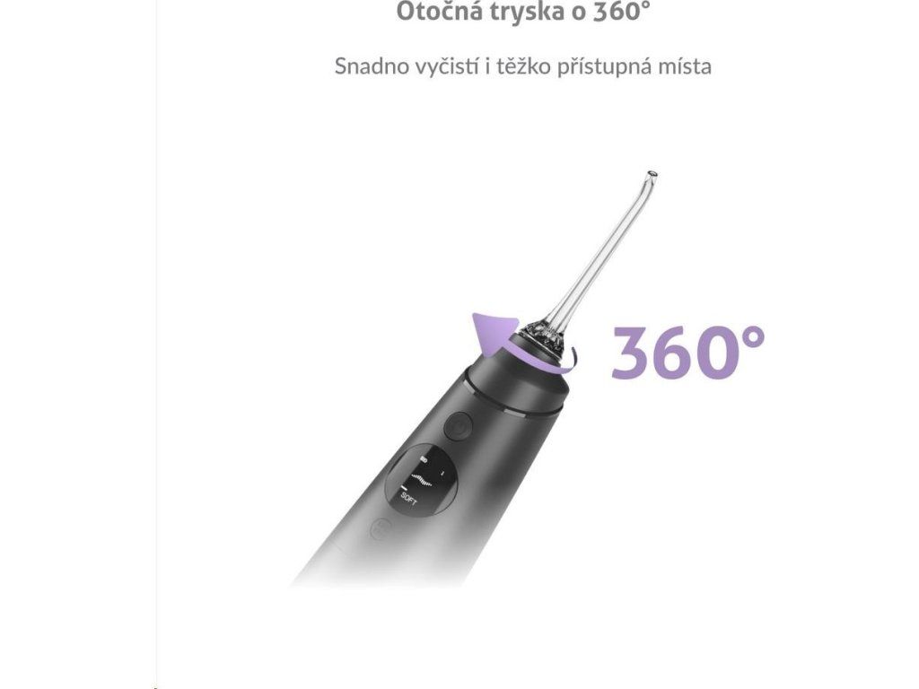 Hlavica trysky je otočná o 360 stupňov, takže jednoducho vyčistí všetky zákutia vašich úst.