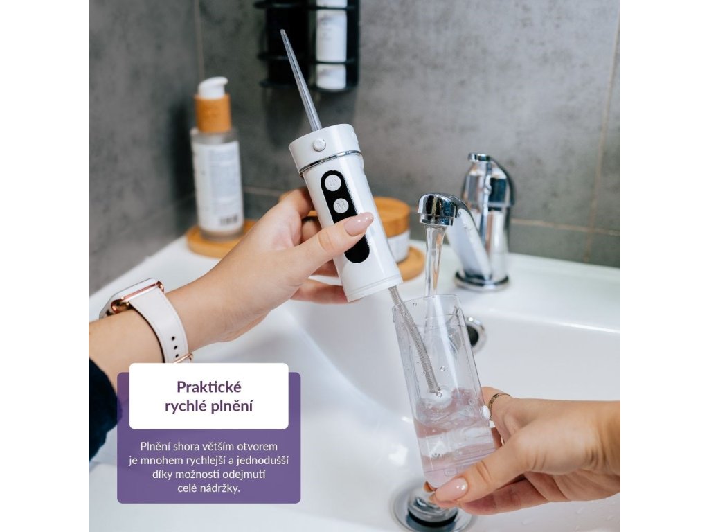 Nádržku s objemom 180 ml ľahko naplníte a môžete pridať okrem vody aj ústnu vodu pre extra sviežosť.
