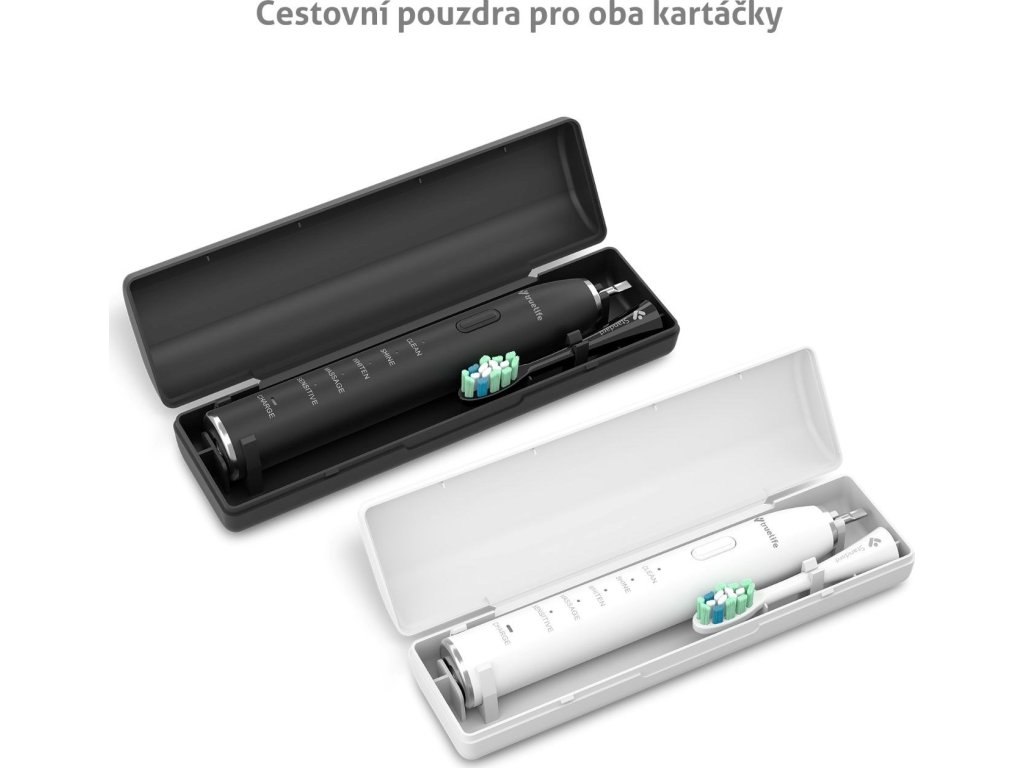 Doby, kedy bolo treba sa rozhodovať buď pre kvalitu alebo nízku cenu, sú preč. Kefky TrueLife Sonic Brush Clean30 poskytujú top starostlivosť a sú dostupné pre každého, v duo packu sa tieto výhody ešte násobia. Získate dokonalú čistiacu technológiu s vysokým výkonom, k tomu celkom 4 hlavice – 2 Standard, 1 Sensitive a 1 Whiten, a súčasťou balenia sú aj 2 cestovné puzdrá v čiernom a bielom prevedení ako kefky, ktoré si vďaka tomu ľahko zabalíte aj na cesty. Batéria kefiek pri použití 2x denne po dobu 2 minút vydrží až 30 dní, potom ju ľahko dobijete pomocou USB-C kábla, ktorý má každú z kefiek svojou.