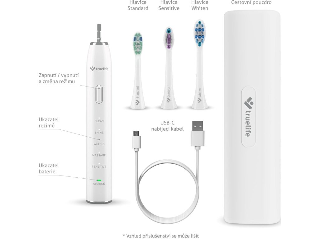 Pravidelná dentálna starostlivosť je základom každodenných hygienických rituálov. Zaistí vám nielen krásny úsmev, ale návšteva zubára už pre vás nebude strašiakom. Vďaka sade dvoch sonických kefiek TrueLife SonicBrush Clean30 v kombinácii Black & White si tento komfort môžete dopriať napríklad spolu s partnerom. Kefky sú vybavené sonickou technológiou SonicTrue a 70 000 pohybov za minútu, ktoré každý z nich vykoná, dokonale a šetrne vyčistí zuby. Využiť však možno aj režim pre masáž ďasien. Kefky disponujú 5 režimami - Clean, Shine, Whiten, Massage a Sensitive. Súčasťou duo packu sú 4 hlavice (2 Standard, Sensitive a Whiten), pri ktorých ľahko spoznáte, kedy je čas na výmenu, a to vďaka modrým štetinkám, ktoré po určitej dobe zbelejú. Ku každej kefke patrí cestovné puzdro, opäť v čiernom a bielom prevedení. Batérie kefky vydržia 30 dní a následne sú na dobitie určené priložené USB-C káble.