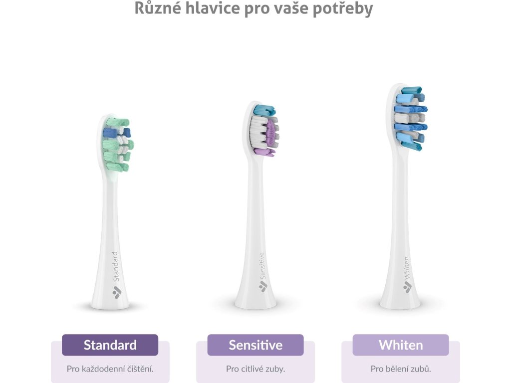 - 2× Štandard hlavice, 1× Sensitive hlavica, 1× Whiten hlavica