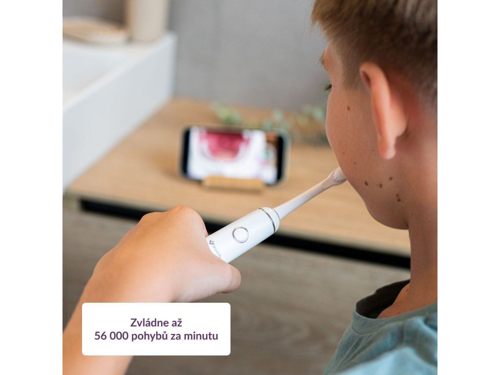 Kefka ponúka 3 režimy čistenia, od pomalého pre menšie deti, po rýchlejšie pre staršie deti, ktoré si zuby čistia kompletne samé a zvládajú techniku.