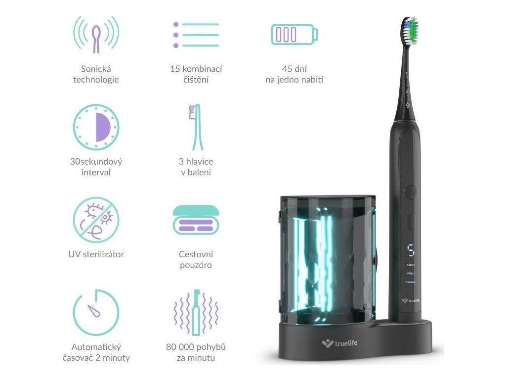 TrueLife SonicBrush K150 UV - Sonická zubná kefka s 15 čistiacimi módmi a UV sterilizátorom