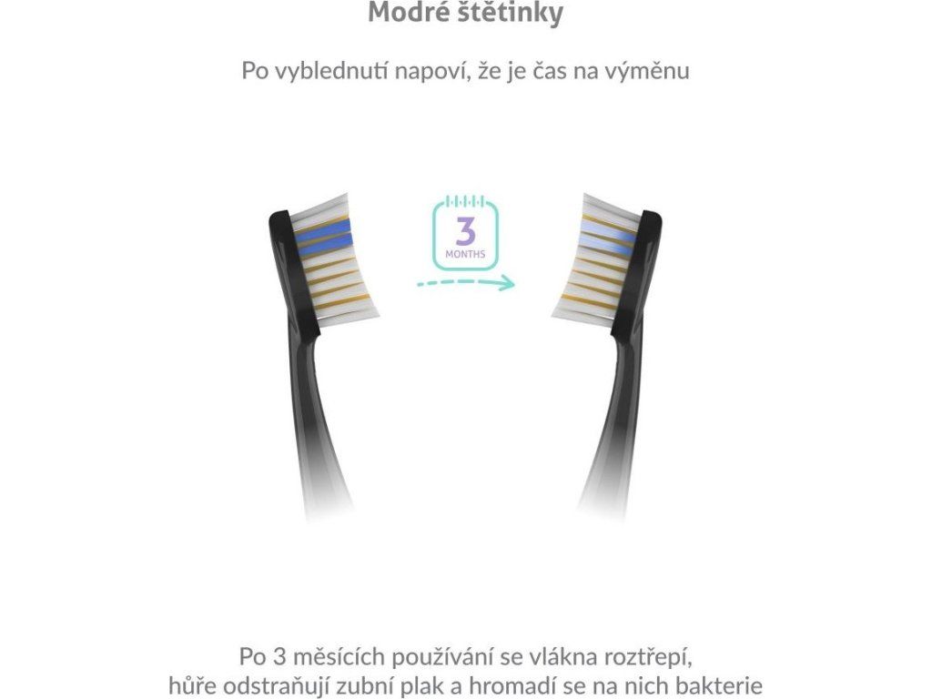 Hlavice disponujú modrými štetinkami, ktoré indikujú mieru opotrebovania. Jednoducho poznáte, že je načase hlavicu vymeniť.