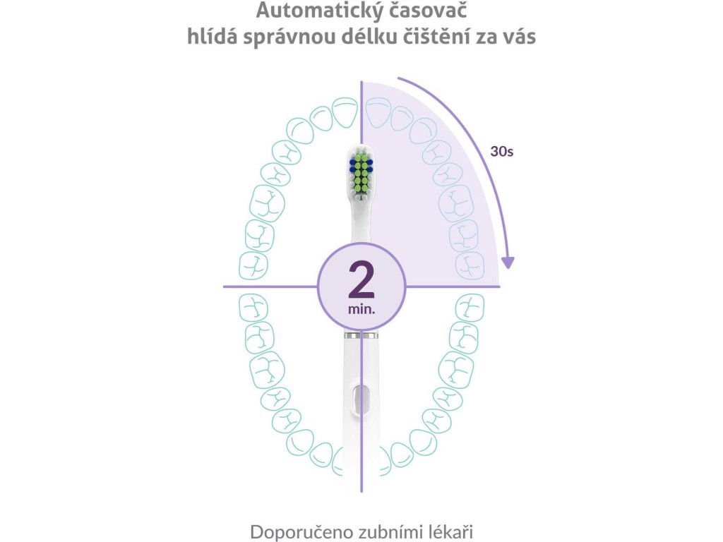 Nastavený 2-minútový interval sa delí do štyroch 30-sekundových sekcií, kedy po každej z nich nastane krátka pauza upozorňujúca, že je čas prejsť na čistenie ďalšej časti chrupu.
