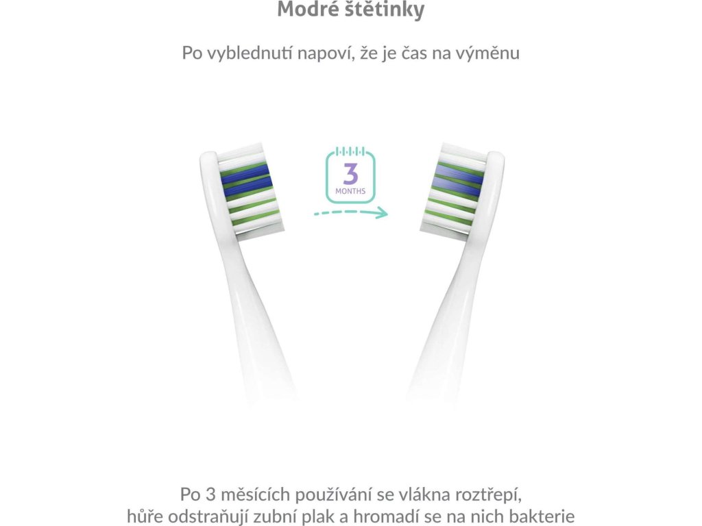 Hlavice kefky sú osadené špeciálnymi modrými štetinkami, tie postupne blednú a indikujú tak, kedy treba hlavicu vymeniť. Doba použitia býva približne 3 mesiace.