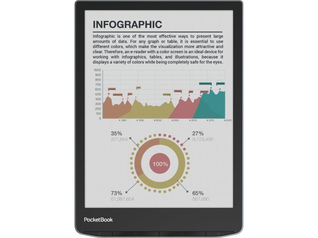 PocketBook InkPad Color 3 podporuje 25 formátov kníh a grafiky bez prevodu vrátane komiksov CBR a CBZ a mangy.