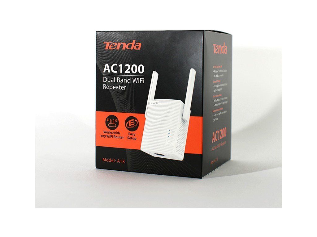Tenda A18 - WiFi Range Extender AC1200 Dual Band, opakovač 1200 Mb/s, 1x LAN 100 Mb/s, WPS, 2x 2dBi