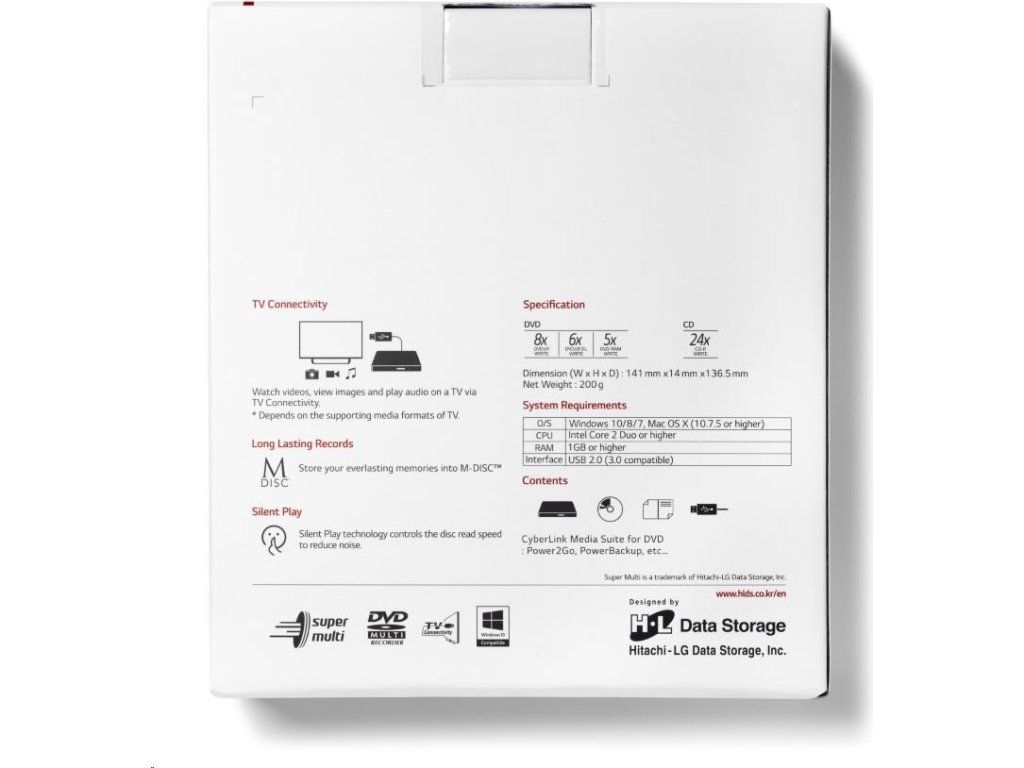 HITACHI LG - externá mechanika DVD-W/CD-RW/DVD±R/±RW/RAM GP57EW40, Slim, biela, krabica+SW