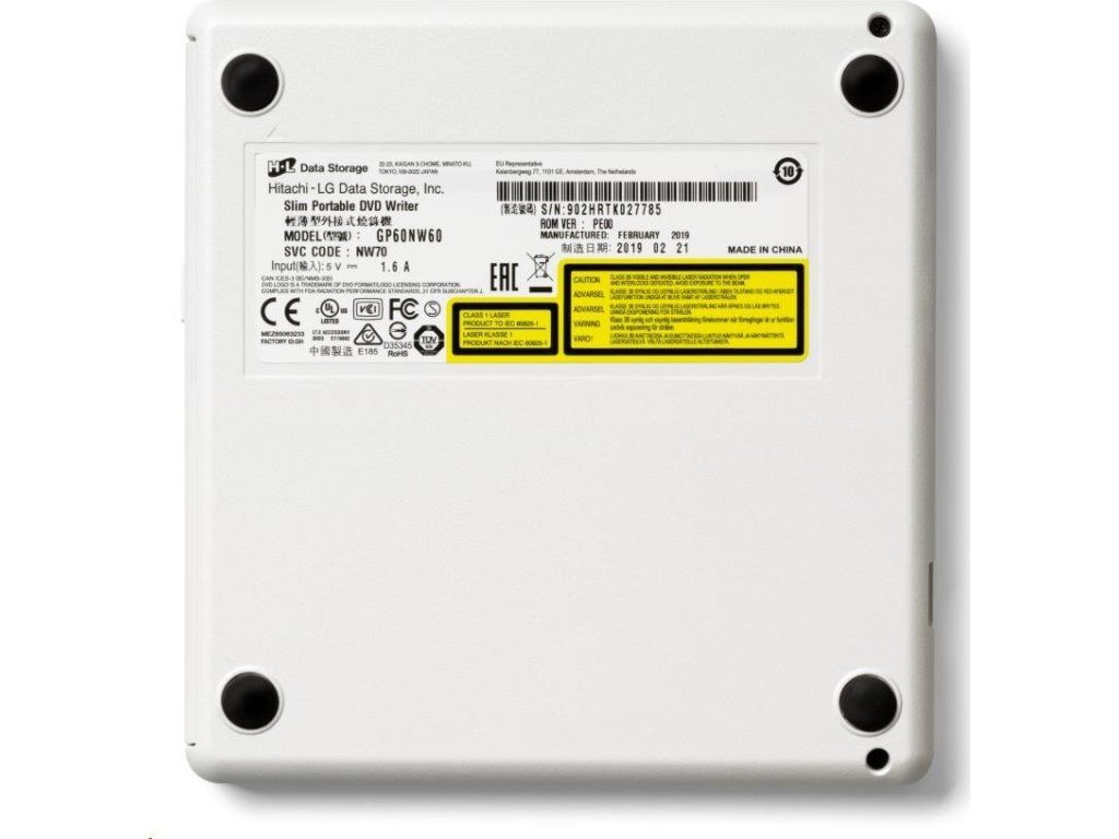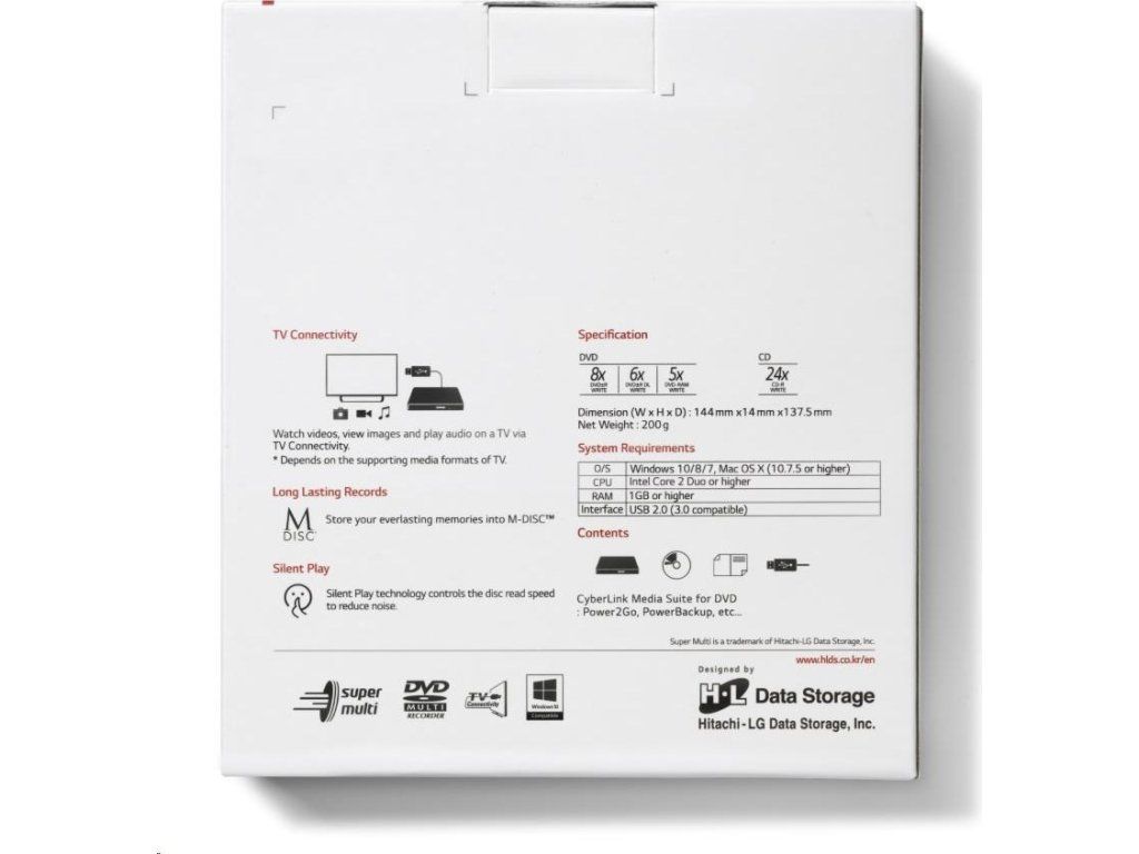 HITACHI LG - externá mechanika DVD-W/CD-RW/DVD±R/±RW/RAM GP60NW60, Slim, biela, krabica+SW