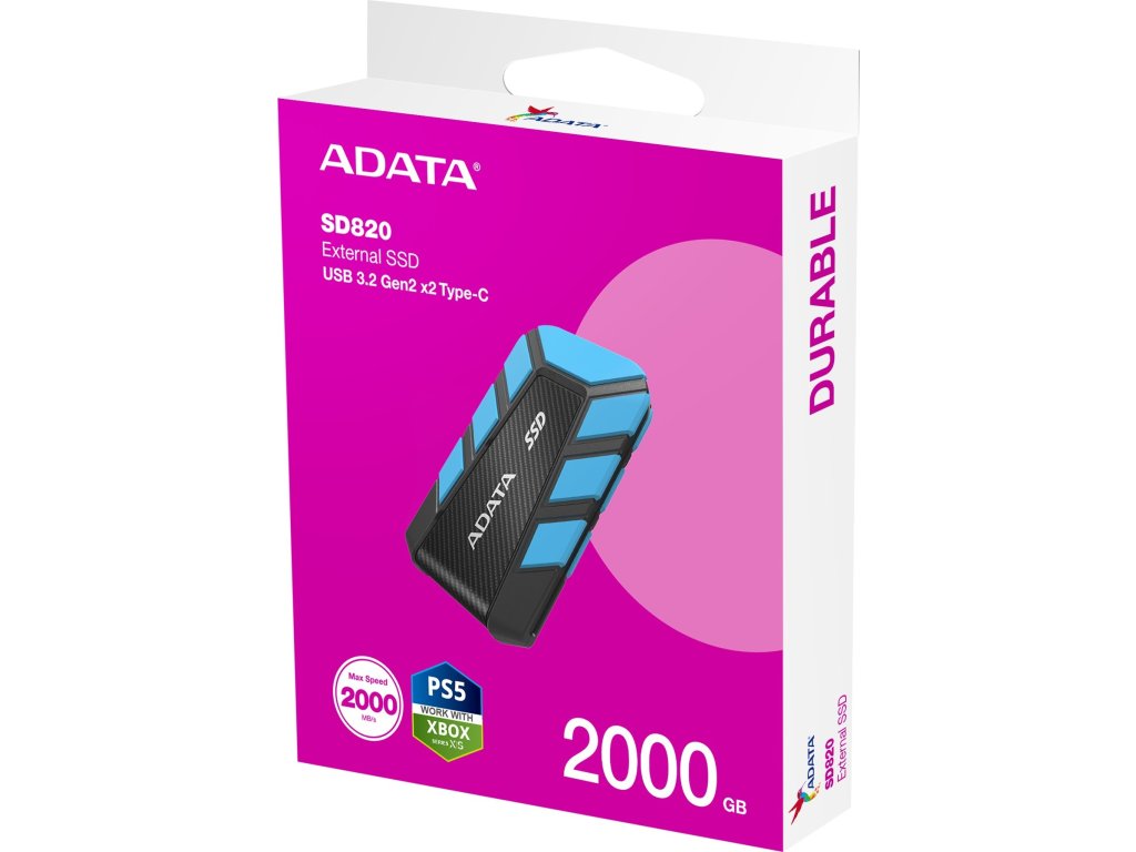 ADATA External SSD 2TB SD820, USB 3.2 Gen 2x2, Černo-modrá
