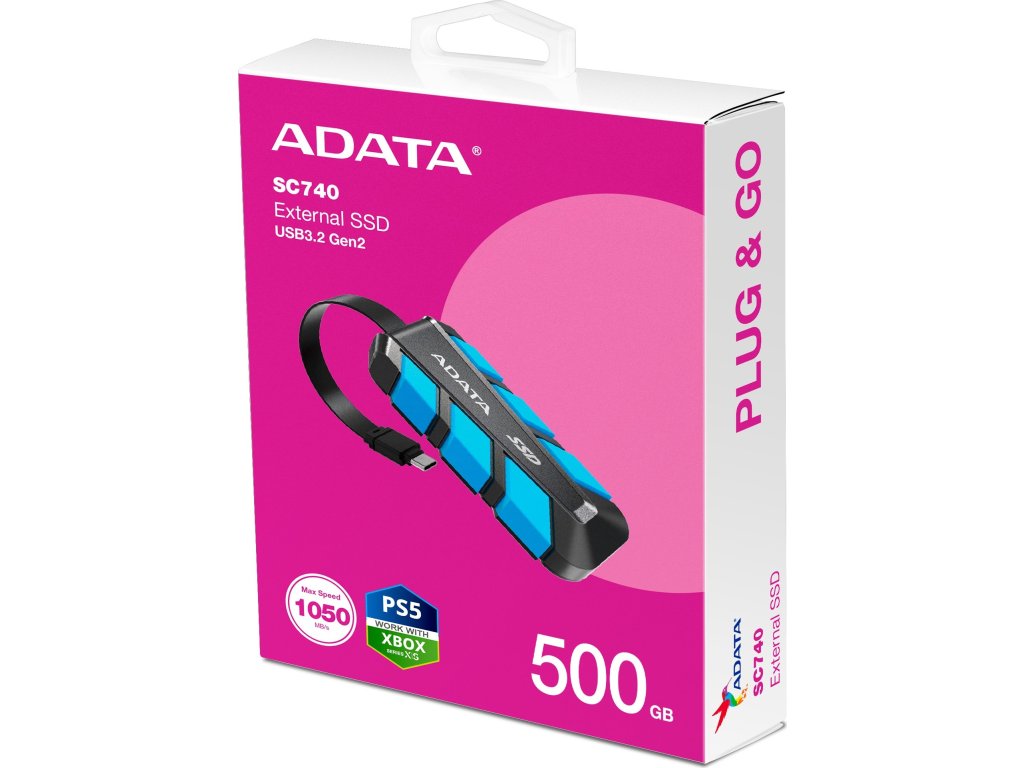 ADATA External SSD 500GB SC740, USB-C 3.2 Gen2, Černo-modrá