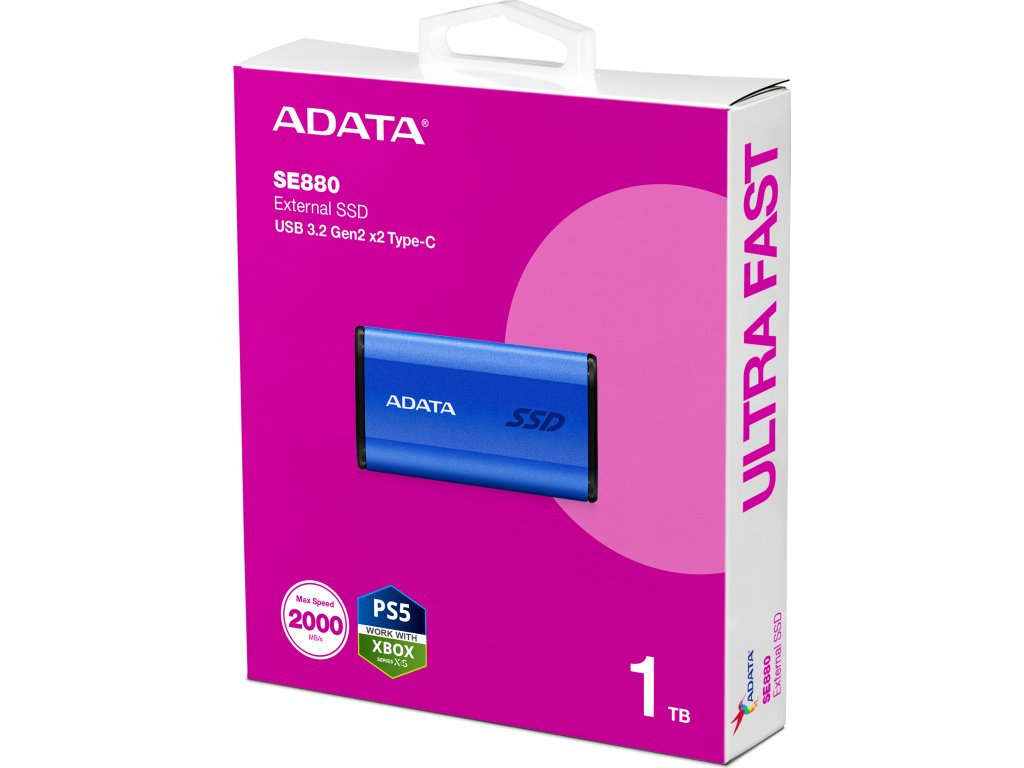 ADATA Externí SSD 1TB SE880, USB-C 3.2 Gen 2x2, R:2000/W:2000MB/s, modrá
