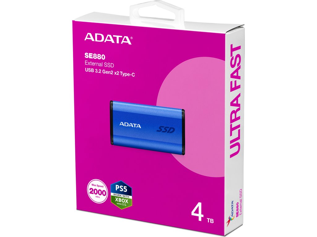 ADATA Externí SSD 4TB SE880, USB-C 3.2 Gen 2x2, R:2000/W:2000MB/s, modrá