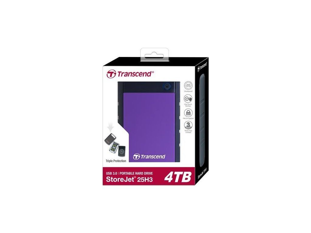 Externý pevný disk TRANSCEND 2,5" USB 3.1 StoreJet 25H3P, 4 TB, fialový (odolný voči nárazom)