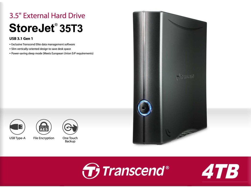 Externý pevný disk TRANSCEND 3,5" USB 3.1 StoreJet 35T3, 4 TB, čierna, Turbo