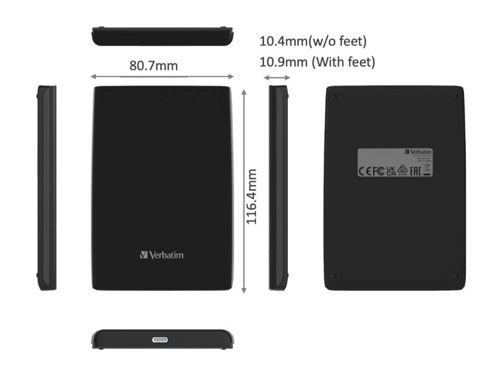 VERBATIM externí SSD 1TB Store 'n' Go Slim Portable USB 3.0, USB-A/USB-C, černá