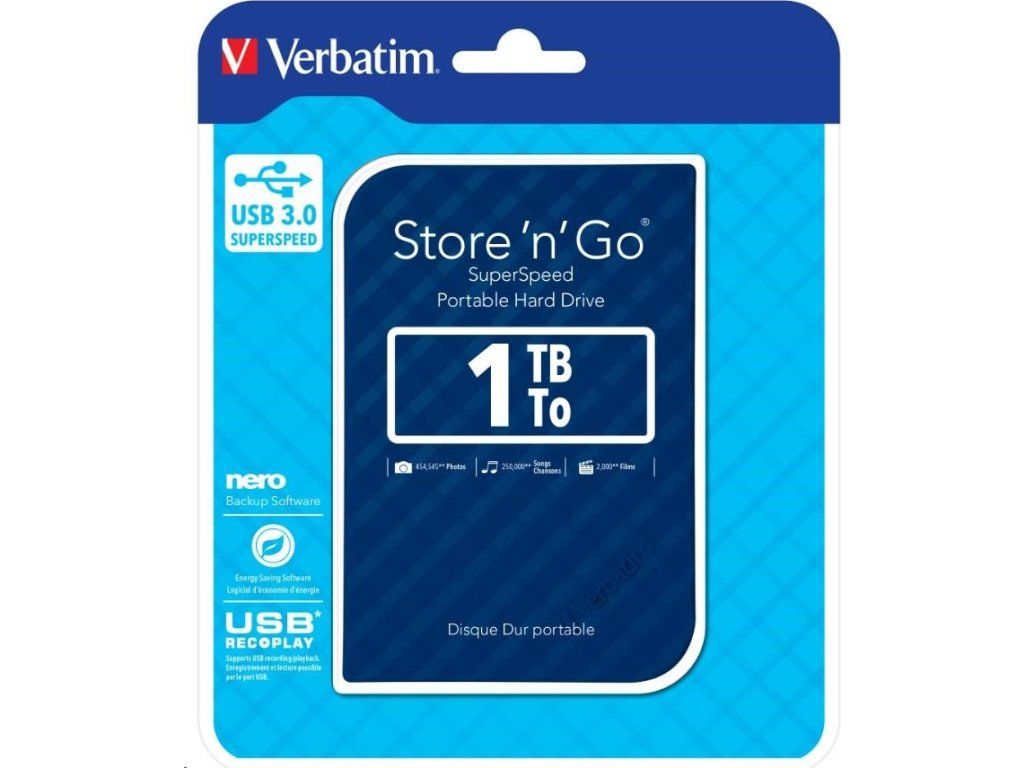 VERBATIM HDD 2.5" 1TB prenosný pevný disk Store 'n' Go USB 3.0, Modrá GEN II