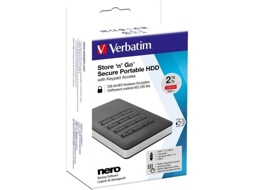 VERBATIM HDD 2.5" 2 TB vrátane.KEYPAD USB3.1 USB 3.0 GDPR
