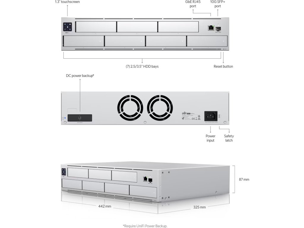 uNVR-Pro je 2U NVR od spoločnosti Ubiquiti Networks s predinštalovaným systémom UniFi Protect na nahrávanie kamier Ubiquiti Networks UVC. NVR dokáže nahrávať až 60 kamier v rozlíšení FullHD alebo 20 kamier v rozlíšení 4k a uchovávať záznam 60 dní. NVR podporuje až 7 diskových polí pre SSD/HDD s maximálnou kapacitou 16 TB/disk, podporuje RAID 1/5/10 pre vyššiu spoľahlivosť uchovávania dát, má 3" dotykový displej, ktorý v neskoršej verzii umožní aj náhľad videa, gigabitový port LAN, port SFP+ s podporou rýchlosti 1 G/10 Gb/s a redundantné napájanie pomocou technológie UniFi SmartPower (USP-RPS).