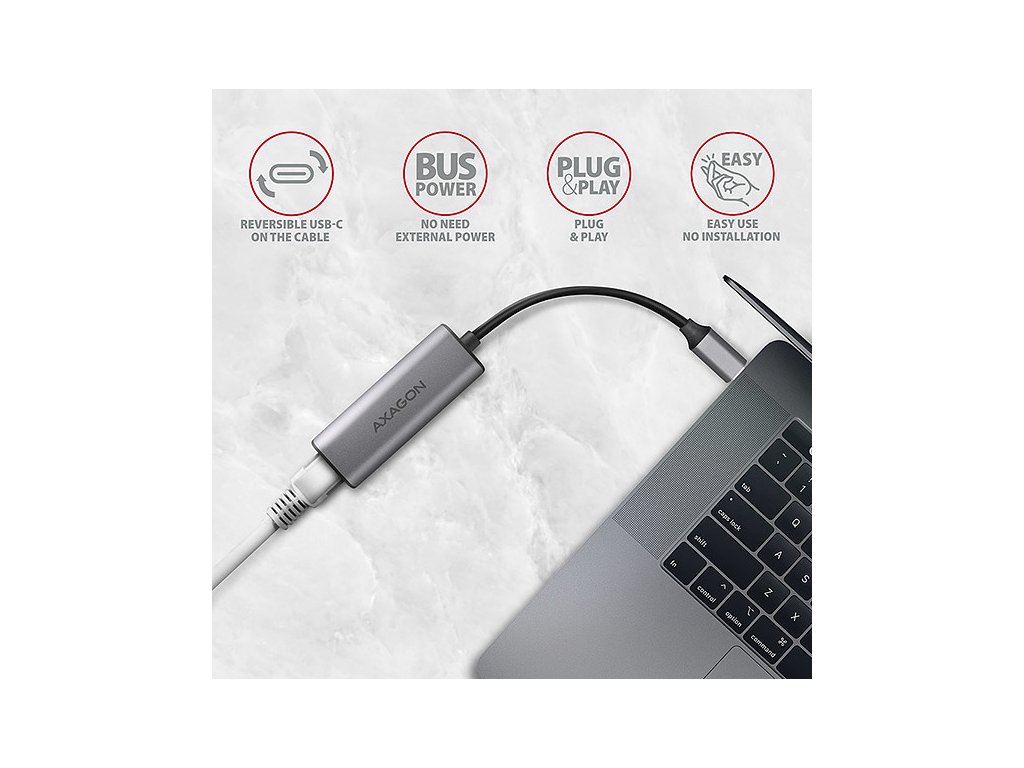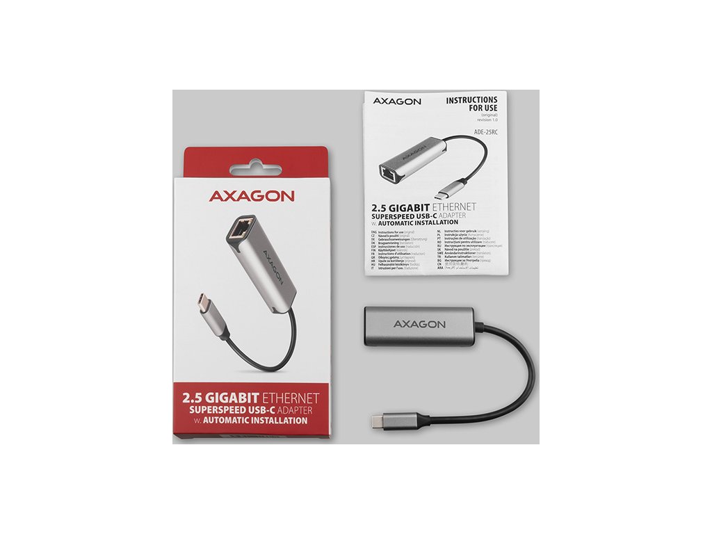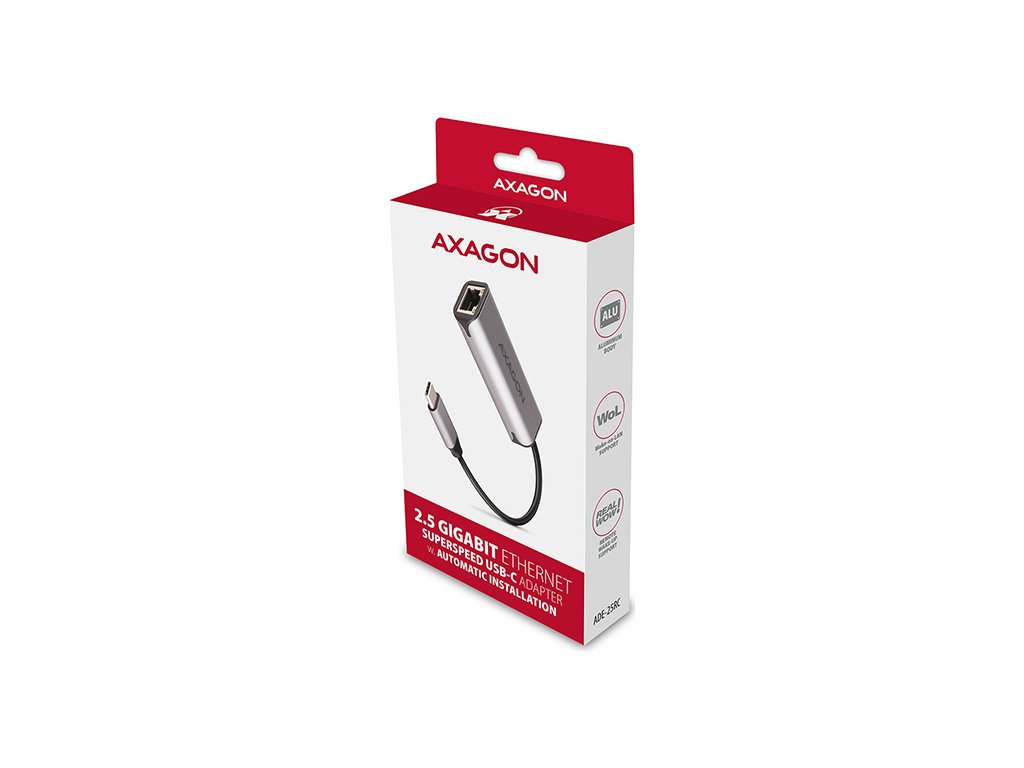 AXAGON ADE-25RC, USB-C 3.2 Gen 1-2.5 Gigabitová sieťová karta Ethernet, Realtek 8156, automatická inštalácia, sivá