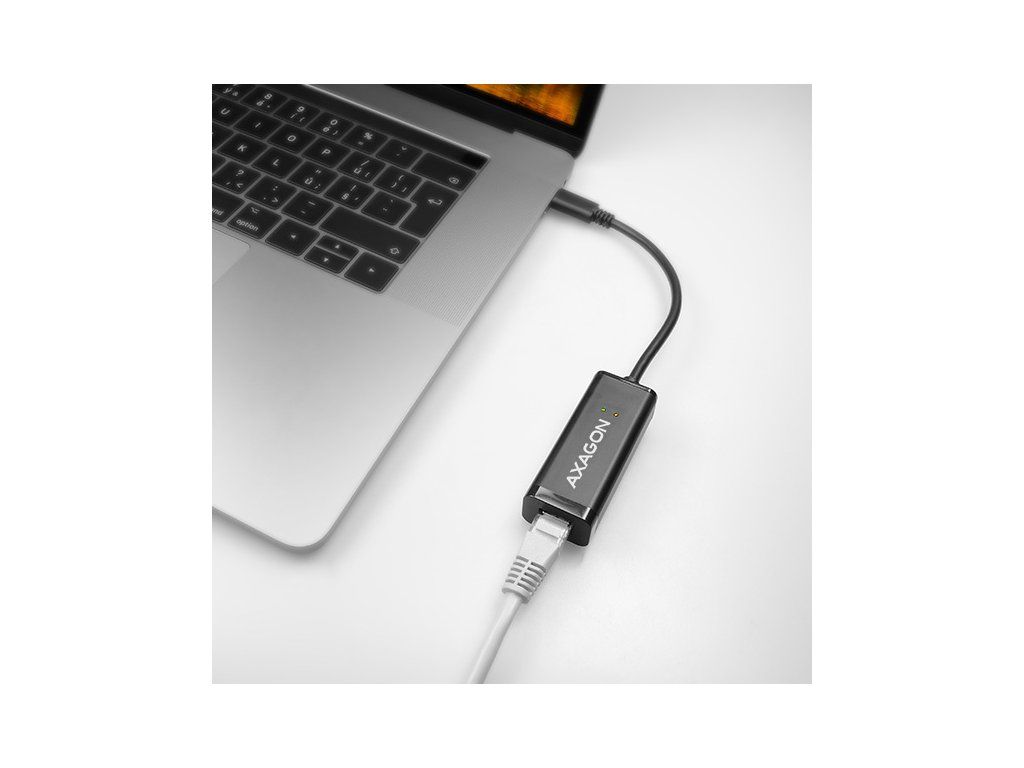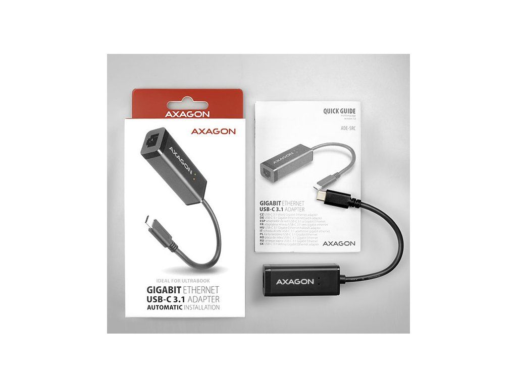 Kompaktný vysokorýchlostný adapter AXAGON ADE-SRC ľahko premení USB-C 3.1 Gen 1 port na Gigabit Ethernet 10/100/1000Mbit port.
