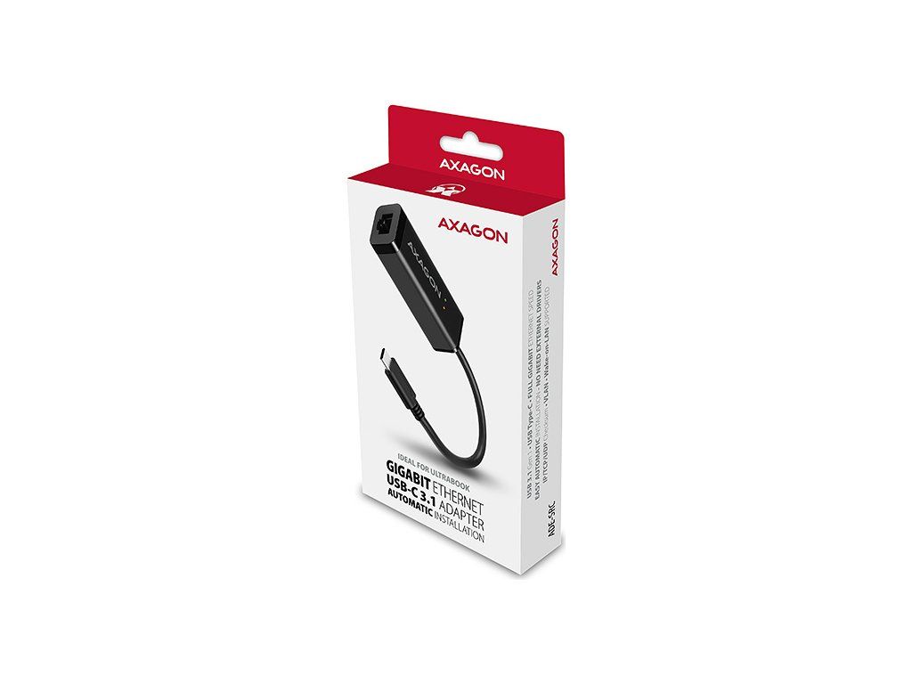 AXAGON ADE-SRC, USB-C 3.2 Gen 1 - Gigabit Ethernet sieťová karta, auto inštal, čierna