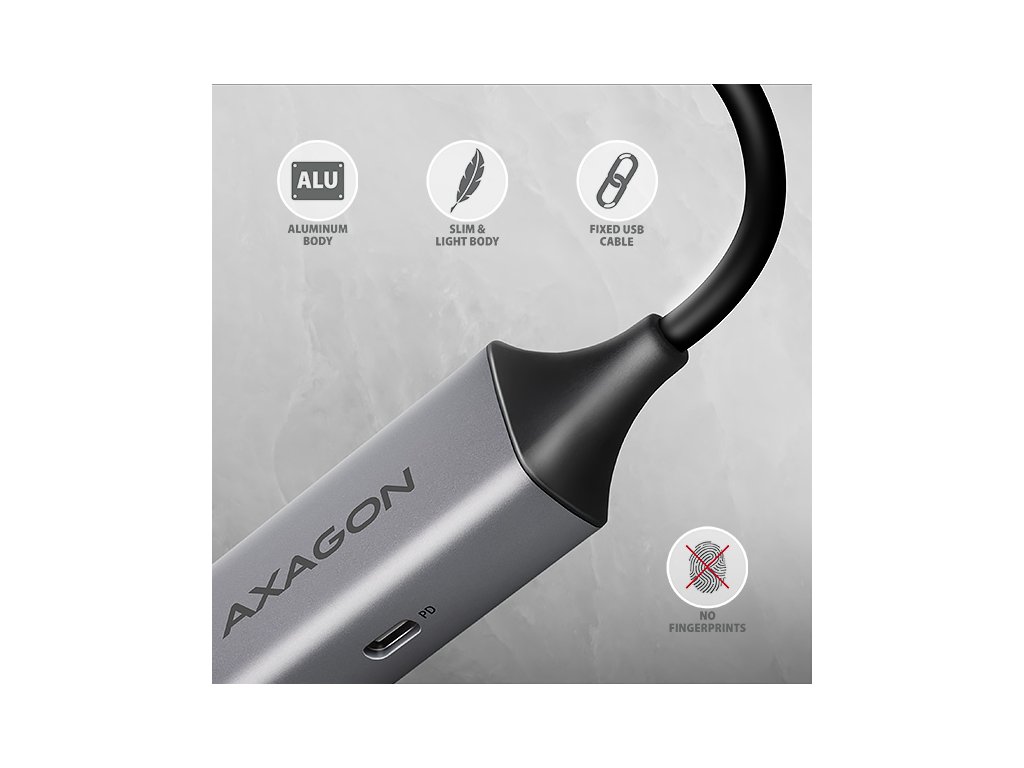 Kovové puzdro adaptéra je vyrobené z hliníka a zaisťuje tak dokonalú mechanickú ochranu a vynikajúci odvod tepla. Jeho kompaktné rozmery a minimálna hmotnosť z neho robia ideálny doplnok pre notebooky a iné mobilné zariadenia.