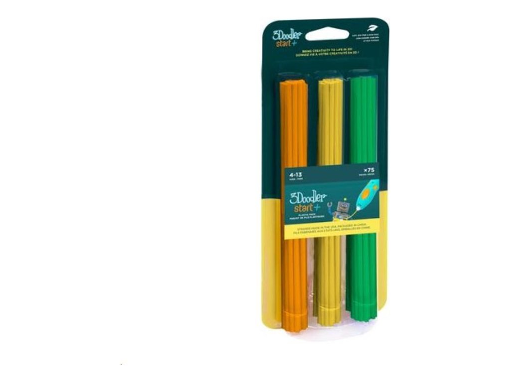 3Doodler Start používa patentovaný plast PCL vhodný pre deti vyrobený vo výrobnom závode v Ohiu, USA. Náplne sú vyrobené z prírodných látok a sú biologicky rozložiteľné, bez zápachu a netoxické. Neobsahujú žiadne DEHP ani ťažké kovy. Používajte iba najbezpečnejšie plastové vlákna 3Doodler Start! Použitie iných náplní môže spôsobiť poškodenie 3D pera a ovplyvniť jeho bezpečnosť!