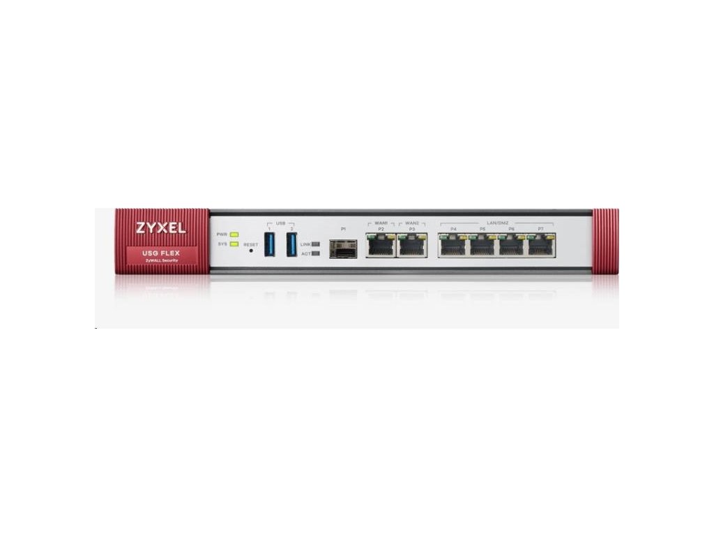 Zyxel USGFLEX200 firewall with 1-year UTM bundle, 2x gigabit WAN, 4x gigabit LAN/DMZ, 1x SFP, 2x USB